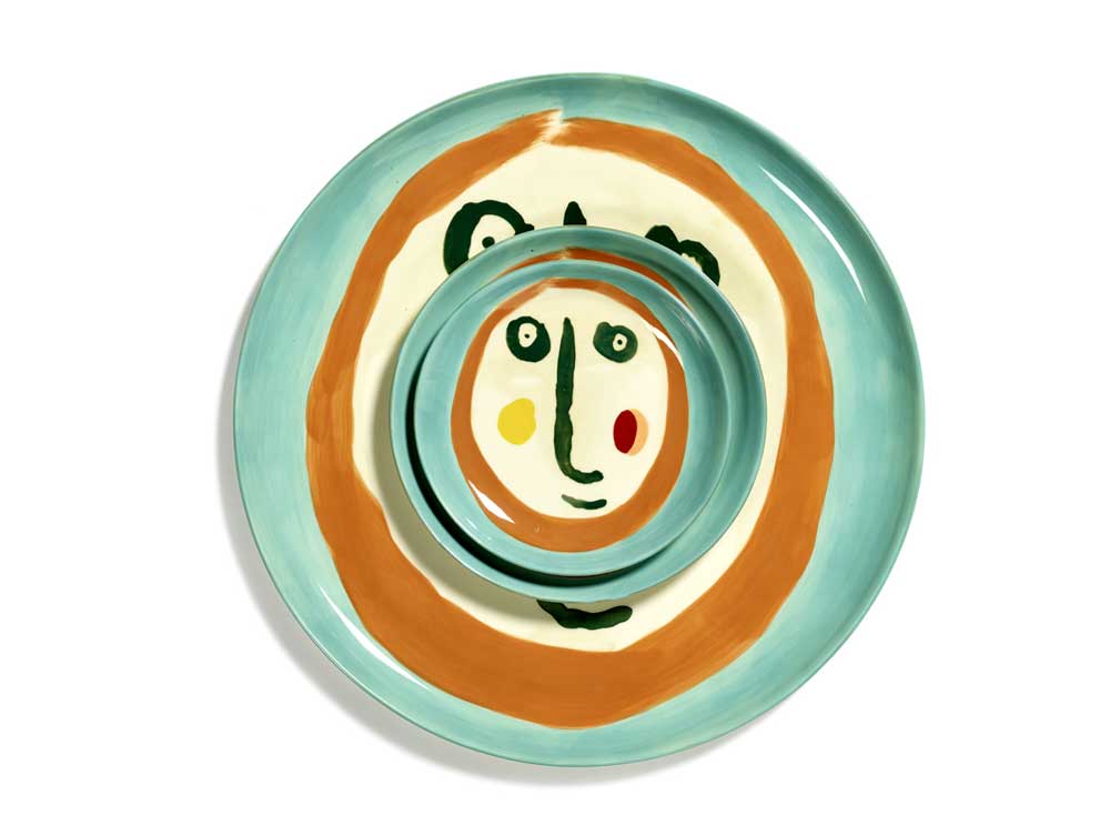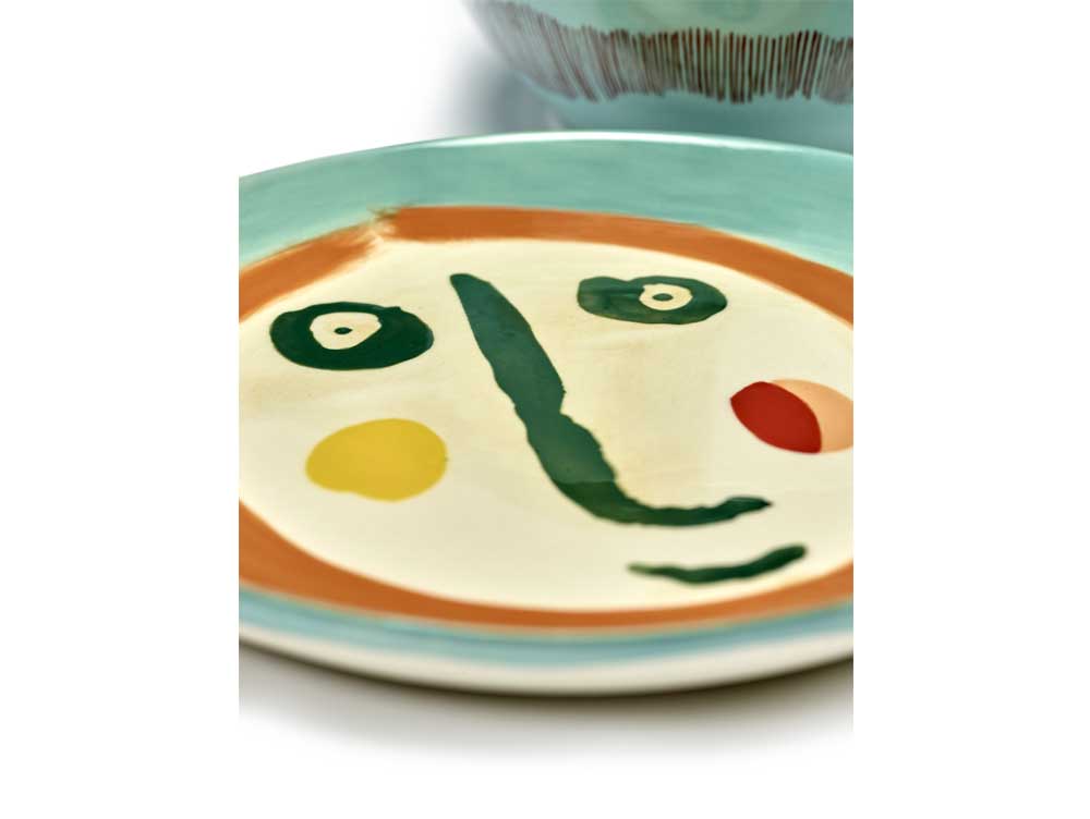 Bord Face is een van de mooie borden uit de reeks servies van Ottolenghi. Een kleurrijk geheel voor op tafel oftewel :Een waar "Feast"voor je ogen! Met een overvloed aan kleuren, groenteprints en positieve vibes weerspiegelt de gloednieuwe FEAST-collectie alles waar zijn maker, de Brits-Israëlische chef Yotam Ottolenghi, voor staat. Voor dit project sloeg de chef de handen ineen met de Italiaanse kunstenaar Ivo Bisignano. "Ivo is zowel een goede vriend als een soulmate voor het creatieve proces in alle Ottolenghi-graphics", zegt Yotam Ottolenghi. De verschillende formaten borden, de levendige kleuren en verschillende patronen roepen allemaal het typische Ottolenghi-gevoel op van 'schandalige nonchalance'. “Deze collectie is een samenwerking die gevoed wordt door kameraadschap en door het delen van liefdevol gemaakt eten rond een prachtig gedekte tafel. We hopen dat u er net zo van geniet als wij.”