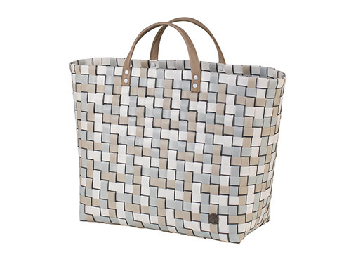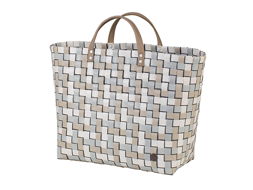 Shopper Refined is een gekleurde boodschappentas. De tas is fijn geweven van 70% gerecycled plastic (polyethylene). De shopper heeft kunstlederen handvatten en binnen vak, zodat u uw kostbare spullen veilig op kunt bergen. Een dag in de stad, of aan het strand, de tas is geschikt voor elke gelegenheid.De tassen zijn van het merk Handed By dat u kunt zien aan het ronde zegel op elke tas met een hand erin gedrukt.