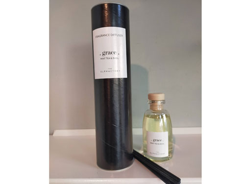 Geurstokjes uit de collectie van The Old Factory. Het glazen flesje bevat 100ml en heeft zwarte stokjes, verpakt in een zwarte koker. De geurstokken zijn zo gemaakt met de juiste ingrediƫnten en op de juiste wijze dat de geurstokken 5-6 maanden meegaan. Mint Tea & Basil -Grace, is een frisse mint geur met een vleugje basilicum, kruidig.