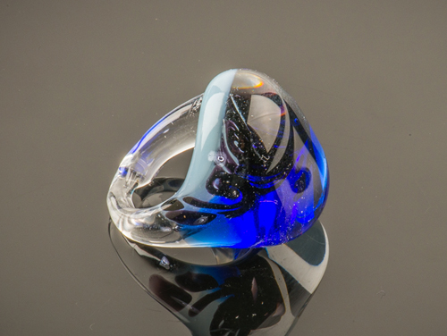 Ring gemaakt van Venetiaans glas in de kleuren grijs en kobaltblauw transparant glas. In het midden is