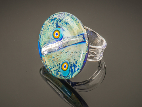 Deze glazen ring uit Murano is "The finishing touch voor uw kledingstuk".
