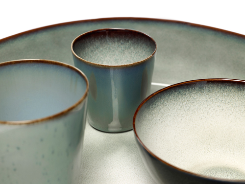 Het servies is gemaakt van keramiek en is