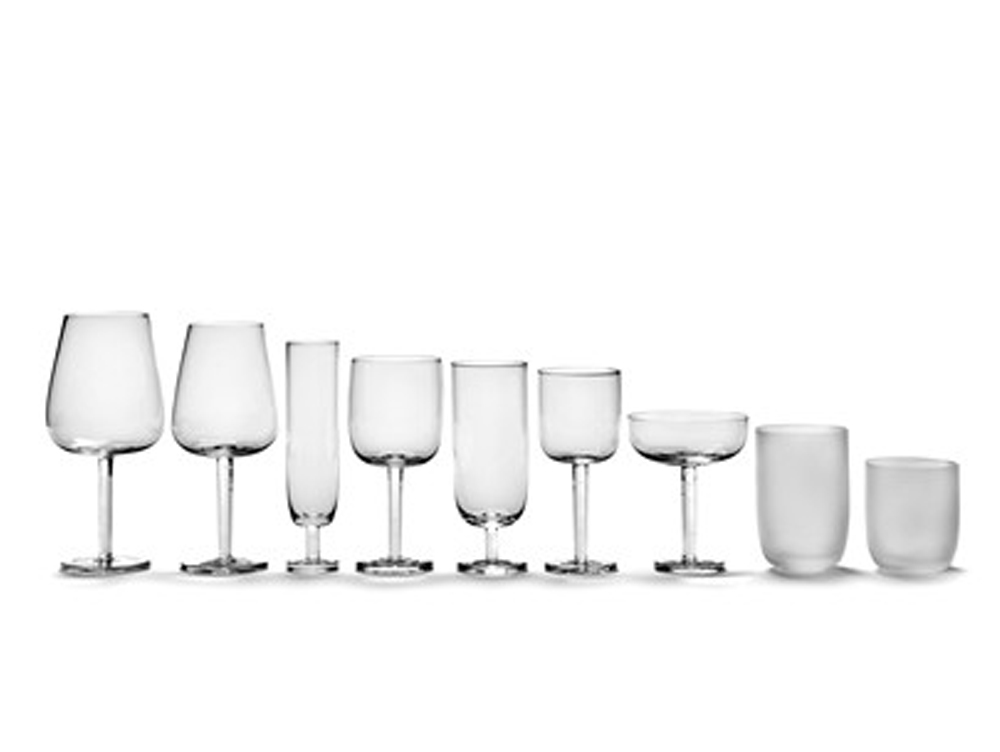 In de Base glaswerk collectie is de trend van de Base-lijn servies collectie van Piet Boon in samenwerking met Serax voortgezet. Op kaarsrechte voet, in het midden van een perfect ronde cirkel, stelen de glazen de show. In de collectie glazen: champagneglas, wijnglas, waterglas en bierglas. Het soort glas, potasglas, maakt het bijzonder sterk. Combineer met het strakke servies en u heeft een mooi gedekte tafel.