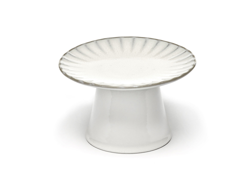 Het was het Japanse gevoel van verfijning en onvolmaakte perfectie dat topchef Sergio Herman wilde laten doordringen in het gloednieuwe Inku-serviesgoed. Het resultaat is een serie serviesgoed met duidelijke verwijzingen naar schelpvormen, bloesems en de abstracte structuren van de natuur. Deze cake standaard is er in verschillende maten.