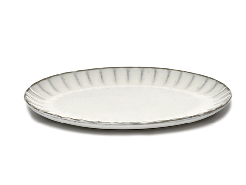 Het was het Japanse gevoel van verfijning en onvolmaakte perfectie dat topchef Sergio Herman wilde laten doordringen in het gloednieuwe Inku-serviesgoed. Het resultaat is een serie serviesgoed met duidelijke verwijzingen naar schelpvormen, bloesems en de abstracte structuren van de natuur. Dit bord is er in verschillende maten.