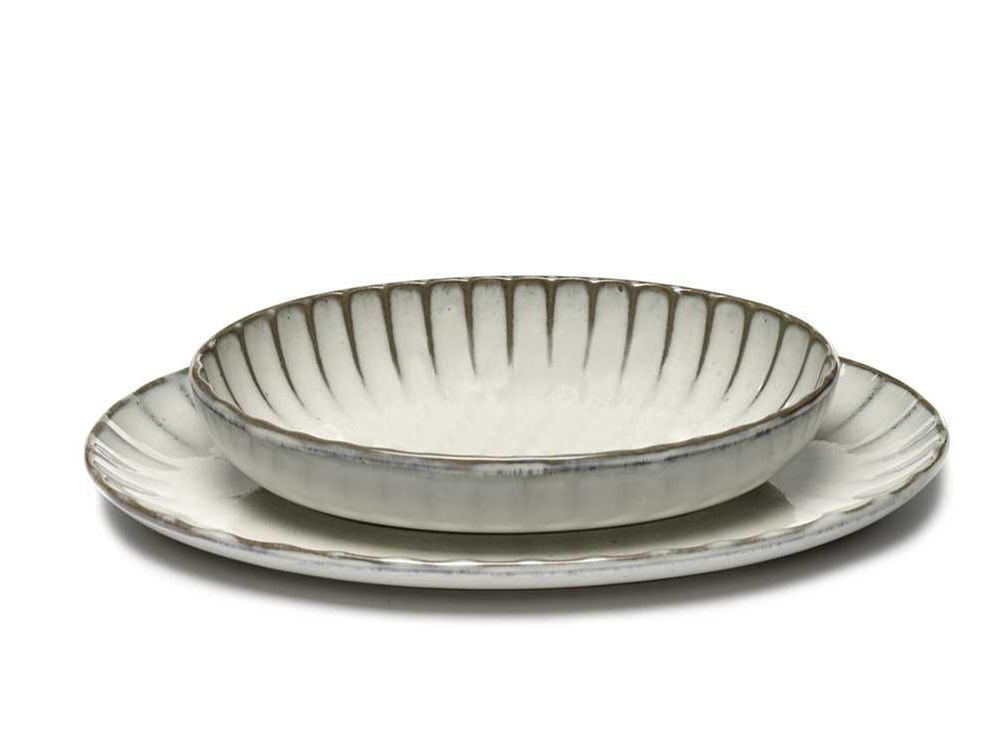 Het was het Japanse gevoel van verfijning en onvolmaakte perfectie dat topchef Sergio Herman wilde laten doordringen in het gloednieuwe Inku-serviesgoed. Het resultaat is een serie serviesgoed met duidelijke verwijzingen naar schelpvormen, bloesems en de abstracte structuren van de natuur. Dit bord is er in verschillende maten.