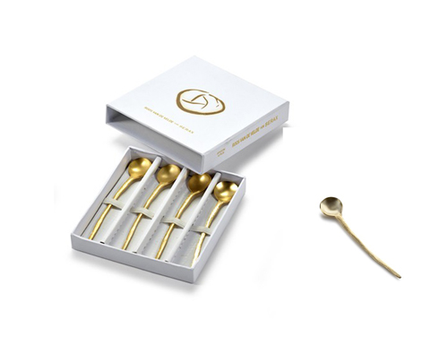 Nu in de collectie de Flora Vulgaris besteklijn van de Nederlandse designer Roos van de Velde voor Serax. Een theelepel met allures uit verguld staal. Per vier verpakt in een mooie geschenkdoos. Een eyecatcher op uw gedekte tafel bij het voorgerecht, nagerecht, de koffie of thee. Combineer dit met het unieke Fine Bone Chine servies van Roos van de Velde. Een pracht cadeau om te krijgen maar zeker ook om te geven.