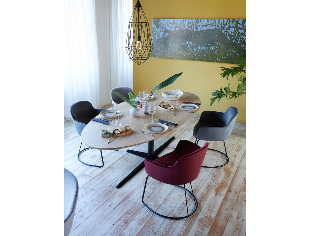 Comfortabele eetkamer stoel Maya, een ontwerp vanuit Studio Spoinq. De stoel is leverbaar in vele verschillende stoffen, kunstleder en leder. Zie stalenkaart. Het buis frame in metaal is uitvoerbaar in: blank gelakt, mat zwart, mat wit of mat antraciet. Optie is een onderstel op wielen zodat deze stoel een mooie bureaustoel wordt. Andere optie is dat de stoel in hoogte verstel baar wordt. De kuipen van deze stoel zijn gemaakt van fineer afgewerkt met een HR schuim en tot slot een mooie stof of leersoort. De afmetingen van stoel Maya zijn: B64xD56xH 78 cm. De zitdiepte is 45 cm en de zithoogte is 45 cm. Vraag ons informatie over de vele mogelijkheden.