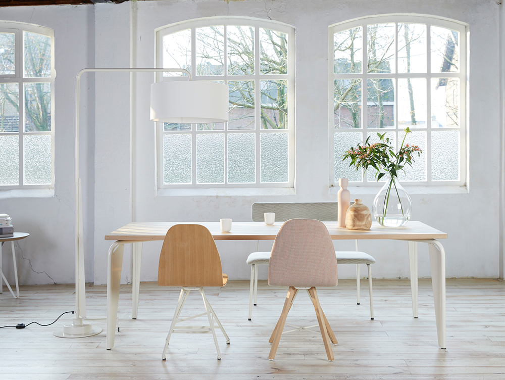 Tafel Arcum is een vintage tafel in een splinternieuw jasje. Een stalen onderstel in diverse kleuren: zwart, wit, zacht geel of donkerbruin rood. Het blad is van eikenhout met een laag Woodlock zodat het tafelblad een bescherming heeft. Combineer met een mooie lichte piramide stoel in stof of hout en je hebt een sfeervolle eethoek in het interieur. De tafel is verkrijgbaar in diverse afmetingen. De tafel is van het Nederlandse merk Spoinq.