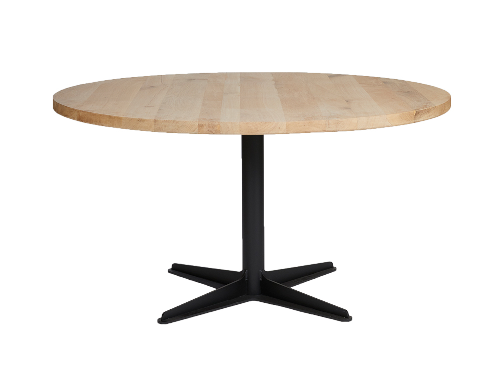 Afmeting: | D110xH75 blad 3 cm eiken stalen onderstel |