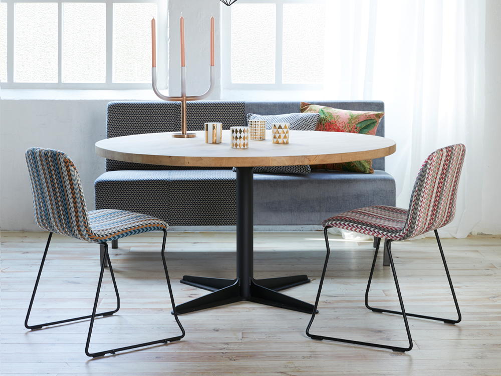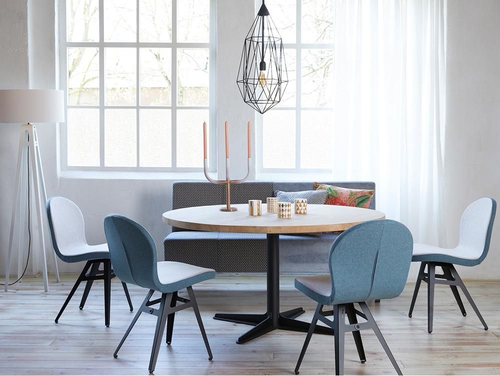 Een ronde tafel biedt altijd sfeer en gezelligheid in het interieur. Ronde tafel Nova is een ontwerp uit de collectie van Spoinq. De ronde tafel is in verschillende maten verkrijgbaar. Het eiken blad kan uitgevoerd worden in 3 cm dik, het blad kan dan recht of verjongd geleverd worden. Het blad van 4 cm dik wordt altijd recht afgeleverd. Het stalen onderstel is verkrijgbaar in: blank staal, zwart, wit, antraciet of groen. Het eiken blad is afgewerkt met Woodlock. Tegen een meerprijs kan het blad van 3 cm ook uitgevoerd worden in geborsteld zwart.