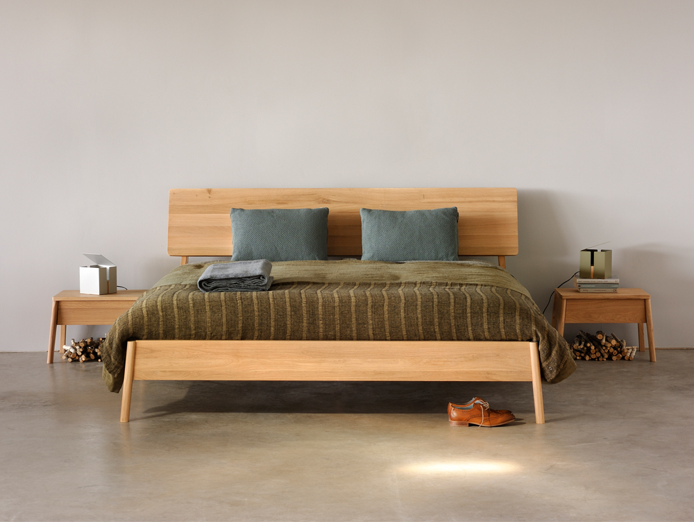 Dit bed is van het merk Ethnicraft en is gemaakt van eiken.