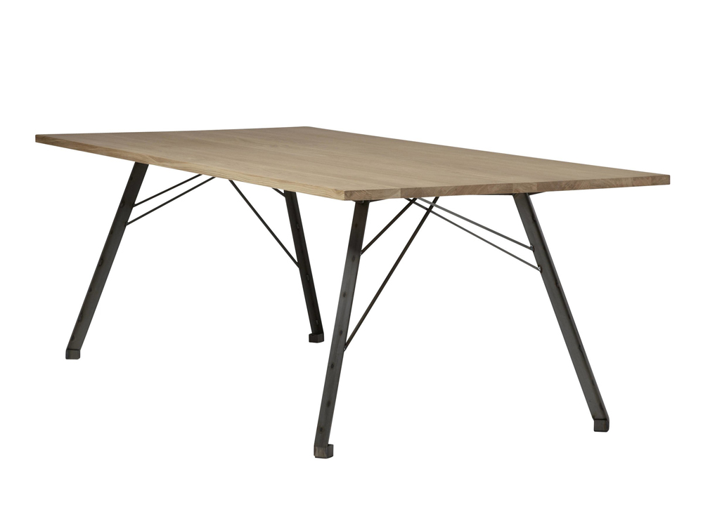 Tafel Straight is een onderdeel van de collectie van het merk Spoinq. Deze eetkamer tafel is een ontwerp van Ruud-Jan Knokke. Een dun houten werkblad in eiken hout met een blank stalen onderstel. Het onderstel